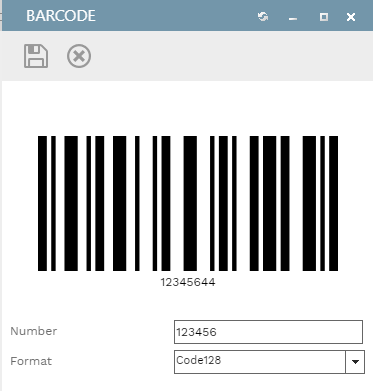 Enter the number assigned to the record and select a barcode format from the dropdown list. A preview of the barcode image appears at the top of the dialog.