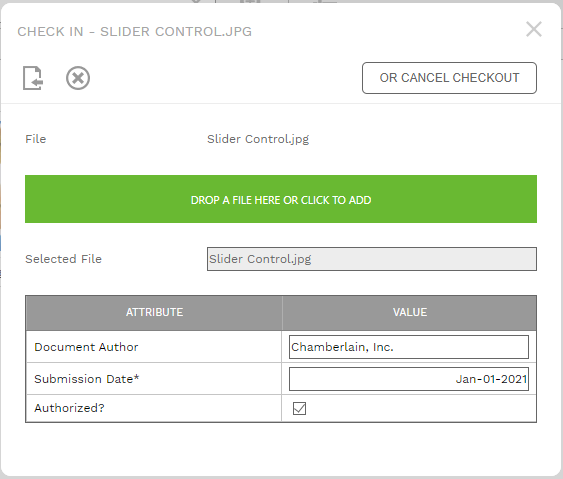 Notes: The If attributes are not defined for the folder, the table does not appear in the dialog. If versions are enabled, for the folder the file will be checked in under a new version number. See Edit Folder Dialog