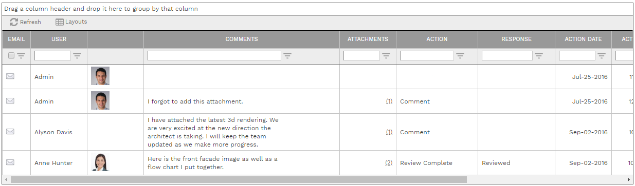 A line will be added to the Collaborate log, including comments you entered and attachments you added
