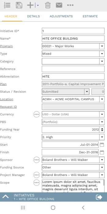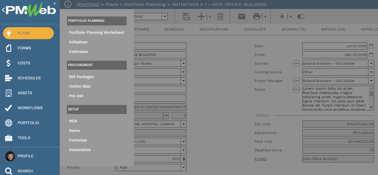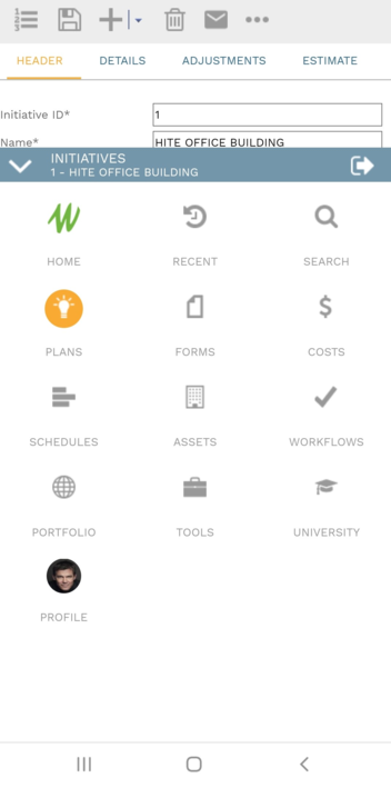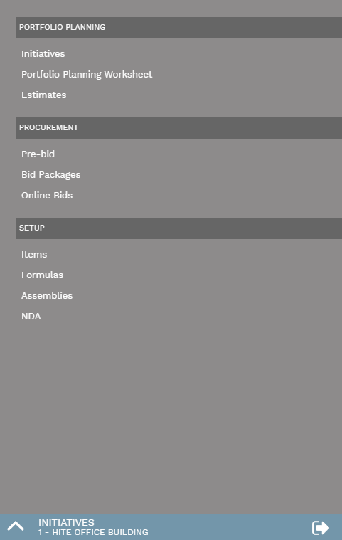 The control panel is the main menu of PMWeb. Its buttons allow you to navigate to various features of the platform. The control panel can be viewed in an expanded state (called a drawer) or collapsed into a more compact view (a rail). The buttons that appear on the control panel vary, depending on which features are licensed and which features the user has security access to. For very small screens (a phone in portrait mode, for example) the control panel becomes a bottom drawer that can be viewed by clicking the expand button at the bottom of the screen.