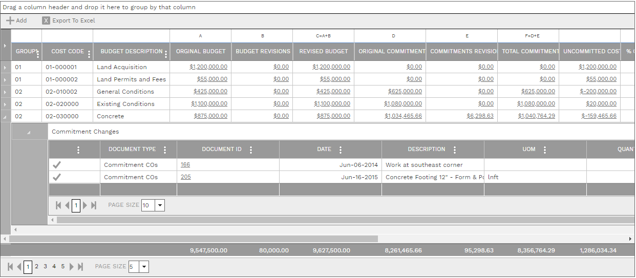 Each of the number cells in the table is a hyperlink. Click the hyperlink to open a sub-table displaying the transactions that make up the number you clicked. In the sub-table you can click on a Document ID cell to drill down to the original transaction record.