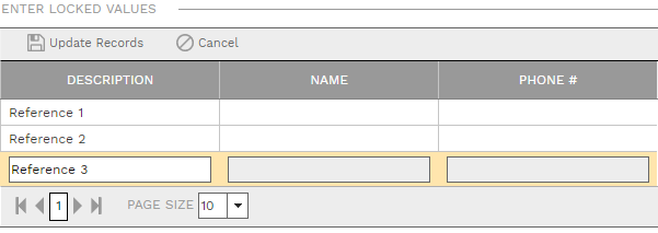 Locked Checkbox - If this box is checked, you can use the Enter Locked Values table to add a set number of rows to the table and enter fixed values in this field that the applicant will see but will not be able to edit.