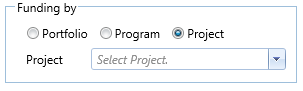 Project Field - The choices in the dropdown list are filtered by the selected program. This field is locked if a project is selected in the Funding By Section in the header.