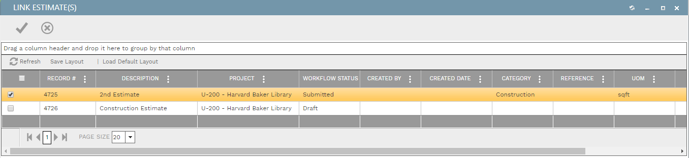 Click the Link Estimate(s) button to open the Link Estimate(s) dialog: