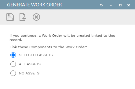 Generate Button - Use this button to generate a linked Work Request, Work Order, Initiative, or Project