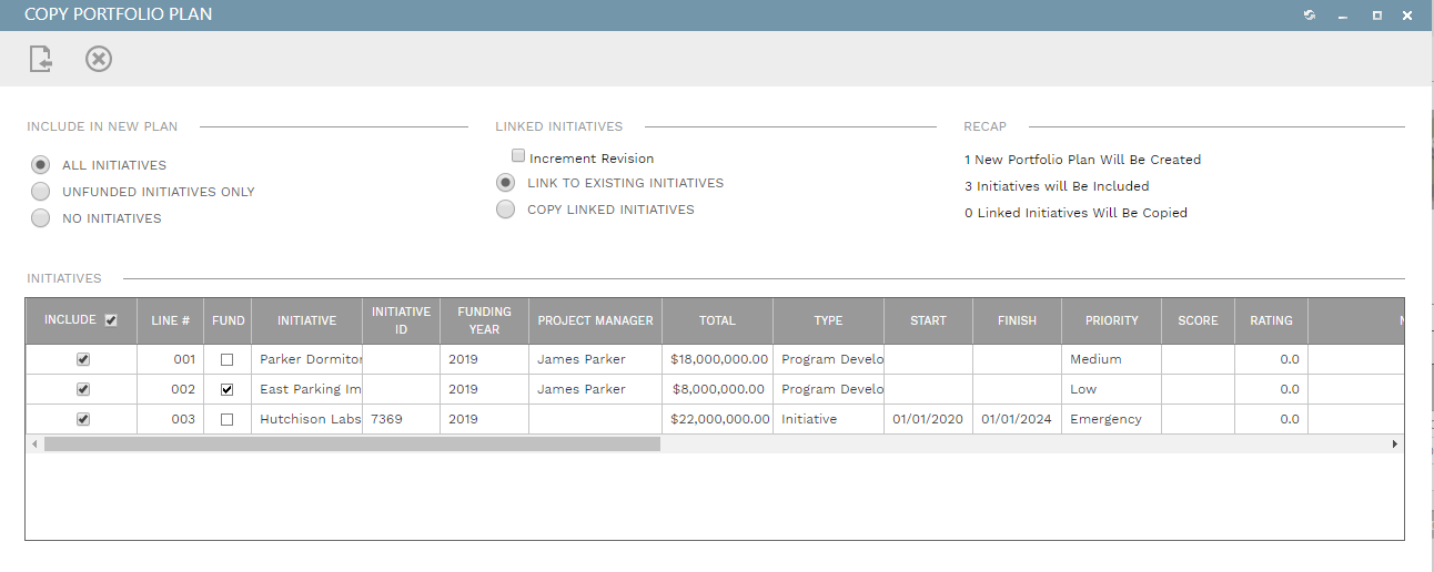 Copy Linked Initiatives - If this is selected any linked Initiatives eligible to be copied will be copied and links to the new Initiatives will appear in the new plan