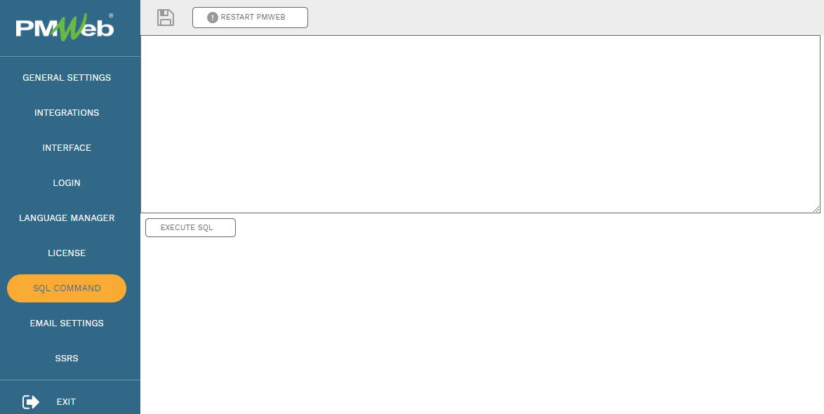Administrators can use this page to run queries against the SQL database. Type a query in the text field and then click the Execute button.