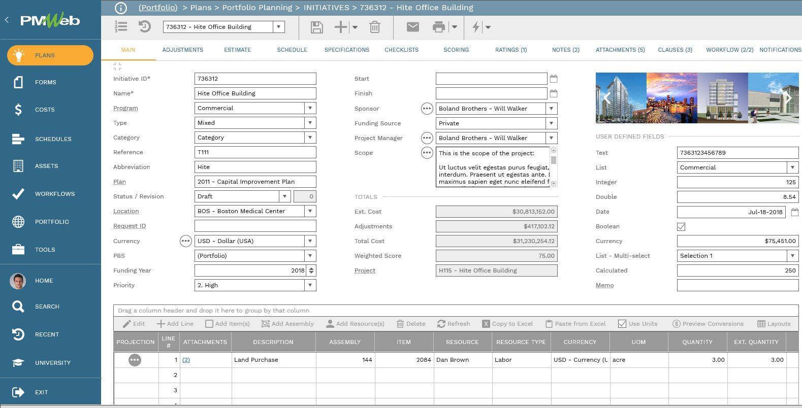 For most PMWeb records, the Main tab is comprised of fields at the top of the page - called the header - and a table of record details at the bottom.