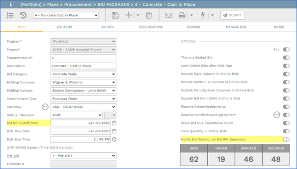 If the setting Notify Bid Contact on Bid RFI Questions is enabled in the Bid Package, an email is automatically sent to the Bid Contact.