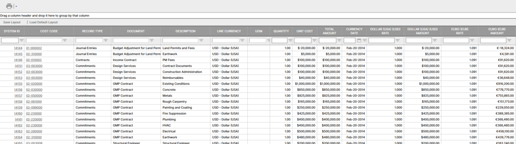 Each time a transaction in the Cost Ledgers is edited and saved additional data - cost ledger converted data - is automatically created as well. The cost ledger converted data is the total amount of each line in the cost ledger converted into every currency in the system using the currency settings of the original transaction. The exchange rate used in the calculation and the converted amount is displayed for each currency. By converting and storing all possible conversions as records are updated PMWEB can retrieve and display conversions very rapidly on system screens and in reports and queries.