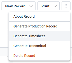 More / Generate Timesheet - Clicking this button opens a new, empty, record in Timesheets