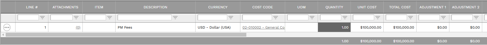 Each line in a Contract record and Contract COs automatically becomes a "Req Code". Lines from other types of transactions (such as Progress Invoices and Timesheets) can be linked to these Req Codes. These cost based lines can then be automatically pulled into Requisitions, allowing you to perform cost plus type billing scenarios.