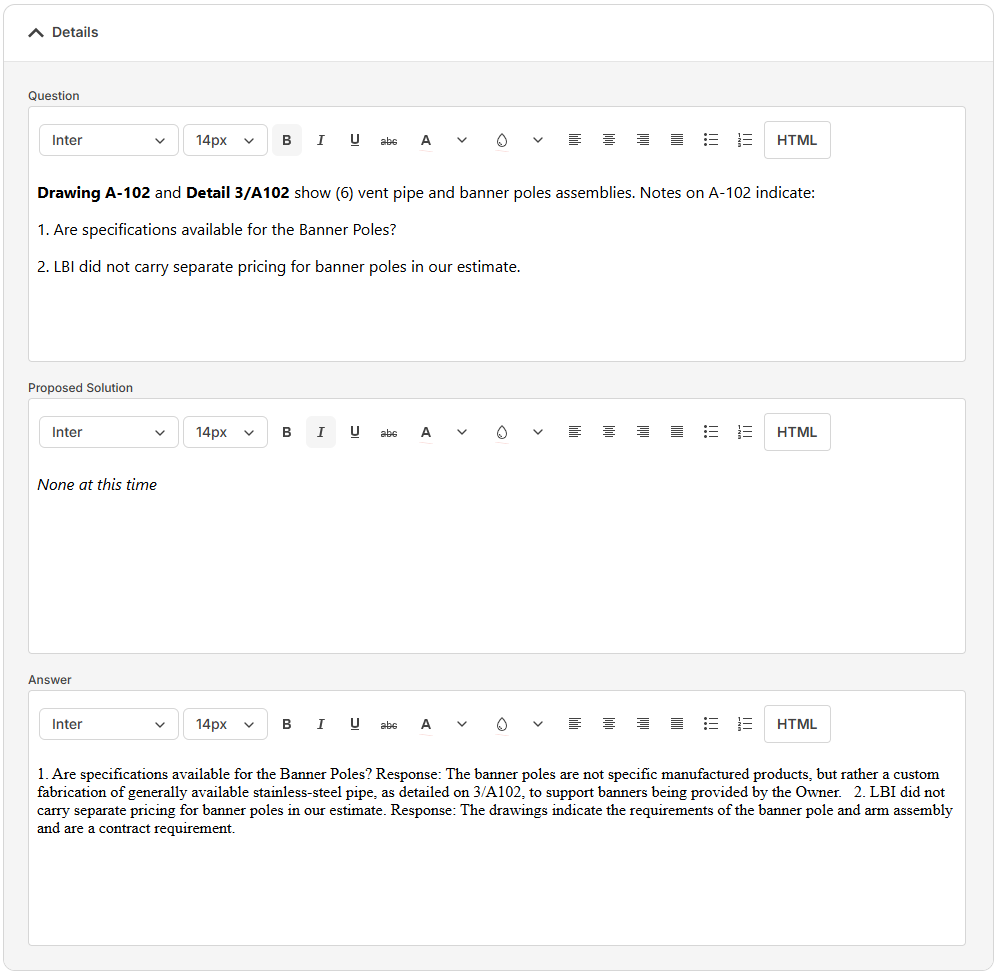 Use RFIs to track questions and answers related to your projects.