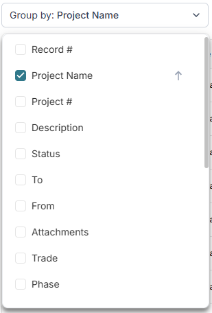 This field only shows if grouping is allowed in the table. Click in the Group by field and then check one or more fields in the dropdown list. The order in which you check fields determines the grouping order. Click the arrow to the right of selected items to change their sort order.